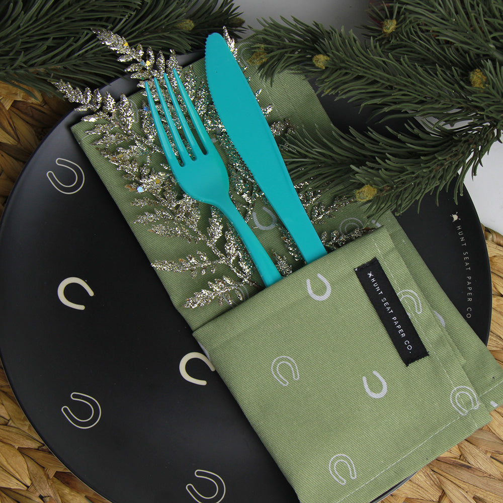 Holiday tailgates, barn Christmas parties and lunch at the horse show was never so stylish. Mix and match patterns of sustainably-made bamboo fiber plates and 100% cotton napkins and placemats, designed with an equestrian edge. Perfect for gifting, but better for you.