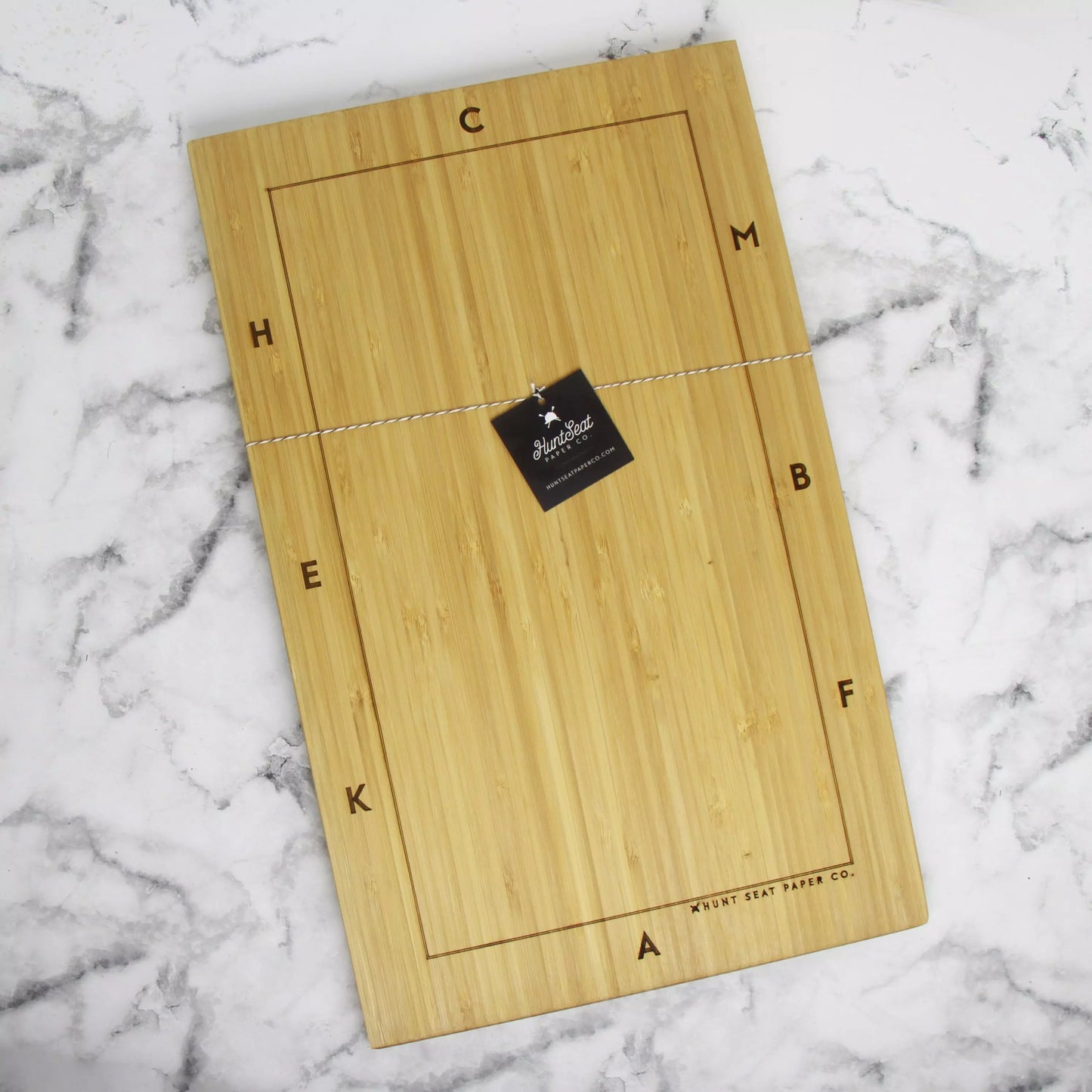 Sustainable, eco-friendly bamboo cutting board engraved on both sides. One side is a dressage court, the other side is a jump course. Have some fun and make your 20 meter circles with tasty treats!