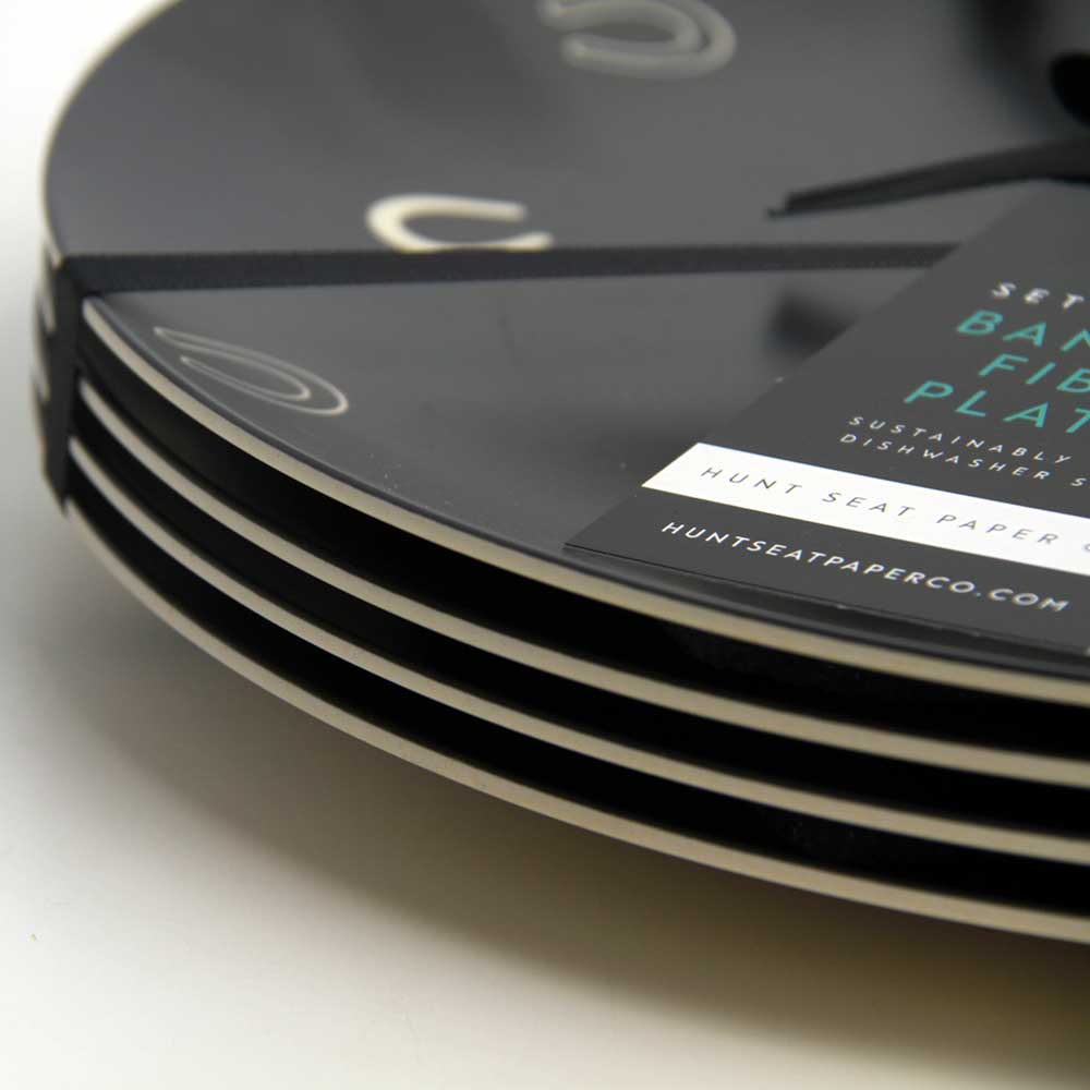 Each set includes four 10" plates, bundled with a satin ribbon.