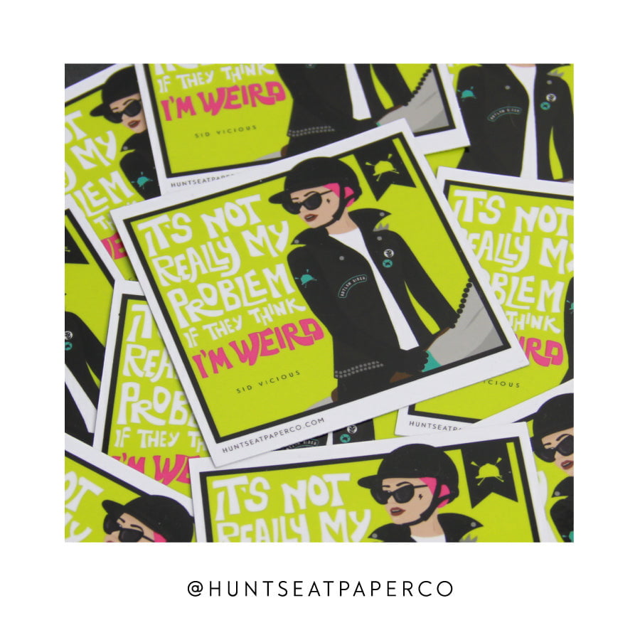 You can't deny it, you're a weird horse girl. It's OK, you're among your kind here. Fly your weird flag with pride and slap this 3" x 3" Weird Horse Girl Sticker on all your stuff. Equestrian stickers made in the USA and designed with mad love for horse girls worldwide.